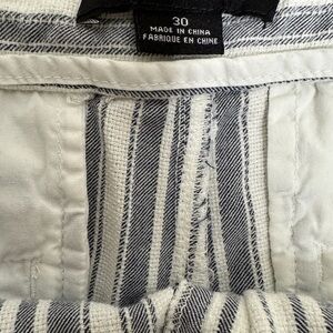 striped crop pants, belted waist pants, cotton summer pants, sanctuary pants, sanctuary by anthropologie, blue white stripes, lightweight cotton pants, straight leg pants, boho striped trousers, casual work pants, breathable pants, coastal chic pants