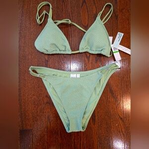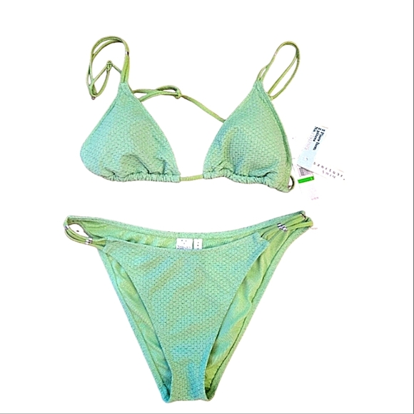 SANCTUARY SWIM Light Pastel Green Bikini Set Silver Sparkle Size L