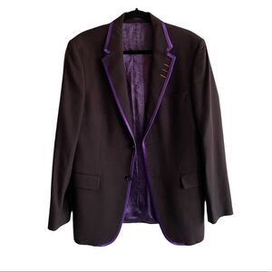 SAND COPENHAGEN Men’s Wool Cashmere 2 Button Front Long Sleeve Blazer Jacket Sport Coat Brown With Purple Trim