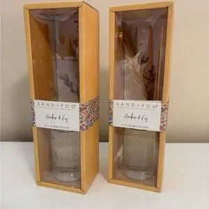 Enhance your home with the SAND + FOG Amber & Fig Reed Diffuser. This elegant cream diffuser fills your space with a soothing aroma, creating a calming atmosphere.