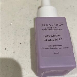 Set of three SAND+FOG essential oils in vanilla tahitienne, lavender, and pineapple coconut scents. Features purple, cream, and green bottles. 10ml
