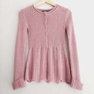SANDRA ANGELOZZI Fit & Flare Button Down Cardigan Sweater Pink Sz XS