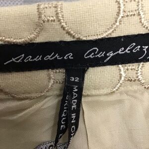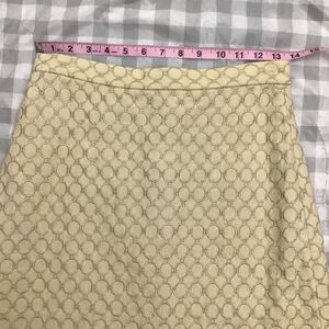 SANDRA Angelozzi designer 50% wool skirt tweed embroidered butter yellow size 32