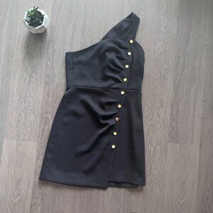SANDRO Black “Melinda” One Shoulder Mini Dress with Gold Buttons. Only worn twice! In excellent condition with no visible flaws or defects (tears, stains, damage, pilling). A sexy take on the classic little black dress 🔥 perfect for events & going out.