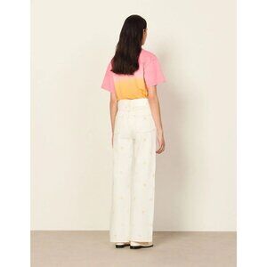 SANDRO Cyriaque White Embroidered Daisy Floral Wide Leg Jeans, Size 36/4/S