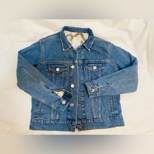 Medium wash denim jacket with prints detail inside. You can wear it everyday, all seasons.
