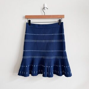 Demonstrating its flair for detail, this mini skirt features a ribbed finish with contrasting knitted accents and a pleated hemline.