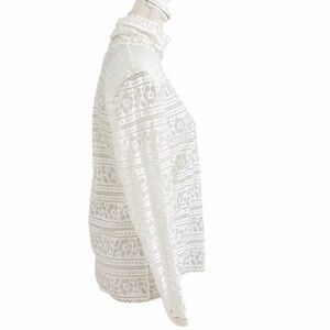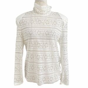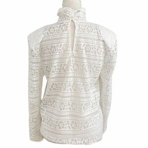 SANDRO HAMIA WHITE OPEN SHEER LACE MOCK NECK LONG SLEEVE SHOULDER PAD TOP - M