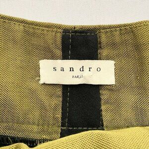 SANDRO OLIVE GREEN LINEN BLEND HIGH RISE STRAIGHT LEG PLEATED TROUSER - 0