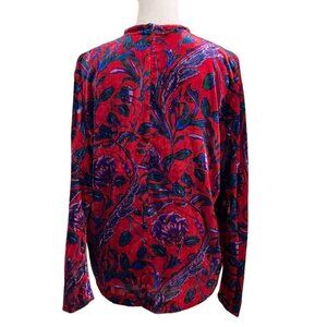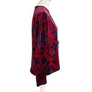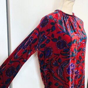 SANDRO PARIS RED BLUE GREEN FLORAL VELVET LONG TEE PULLOVER TOP - S (SIZE 1)
