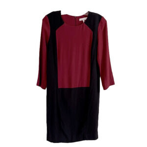 Colour Block Long Sleeve Burgundy Black Fitted Shift Paris SANDRO Designer Dress Size 1 Small XS