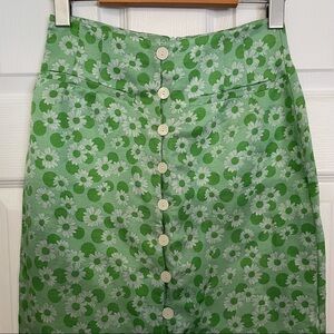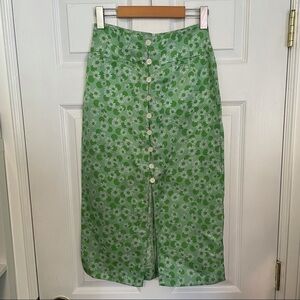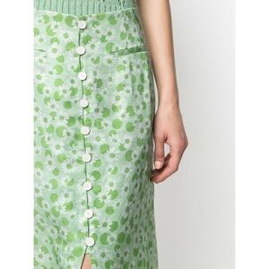 Sandro Green Long Floral Print Botton Skirt with slit 0