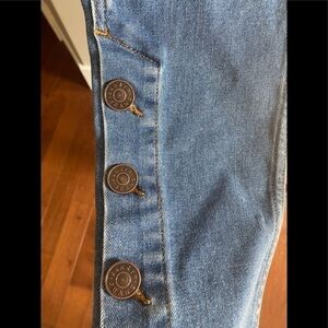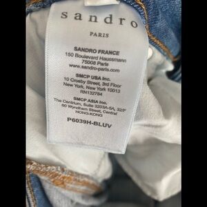Super cute Sandro paris high rise skinny jeans. These jeans are a light wash and have buttons along the outer seam of the leg. Size 40 euro which is a size 30 USA. These jeans are nwot. I bought them, tried them on and just havnt reached for them as they are quite long. Would be better with a person with longer legs.