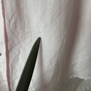 - callouts: loose thread near armpit right side, two small stains shown in pictures