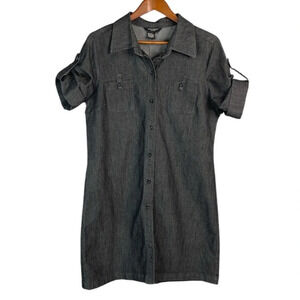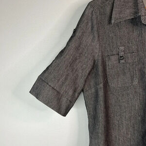 SANDRO Sportswear Stretch Denim Shirt Dress Black Tab Sleeve Button Up Collar 12