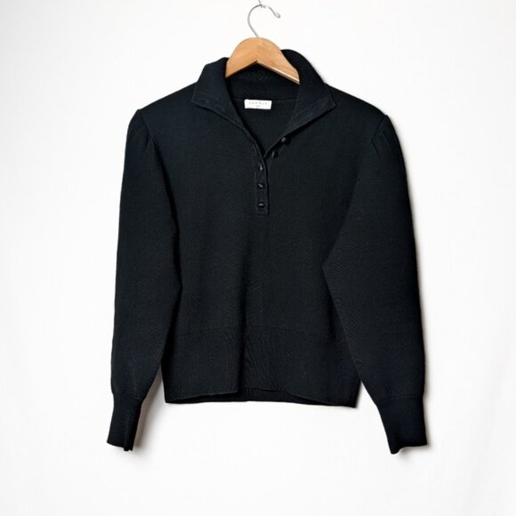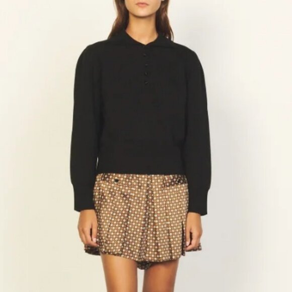 SANDRO Wool Polo Collared Sweater Puff Sleeves and Satin Buttons