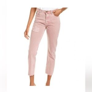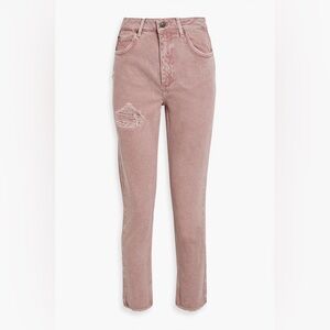 JILLY CROPPED DISTRESSED HIGH-RISE STRAIGHT-LEG JEANS IN ANTIQUE ROSE