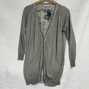 SANDWICH Distressed Grey Knit Cardigan with Sheer Back Panel, Size X-Small