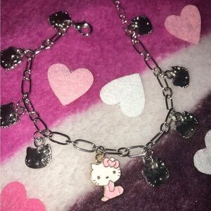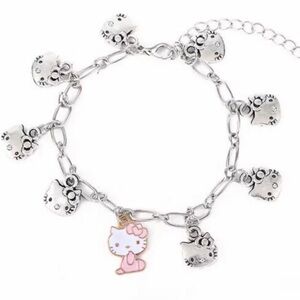 • adorable pink & white hello kitty charm in centre, with silver tone hello kitty authentic sanrio charms