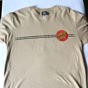 The Original Santa Cruz Skateboards "Classic Dot" T Shirt. Men's size medium, 100% cotton, beige/tan color with orange/yellow logo on front and back. Pre-owned but in great condition with logo still vibrant. Smoke-free, pet friendly home!