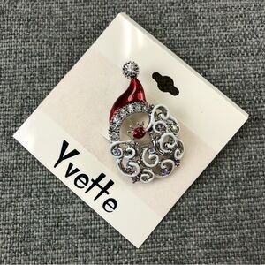 NEW enamelled and crystal Santa pin. Comes on card for gift giving. A lovely addition for jean jacket or winter coat.