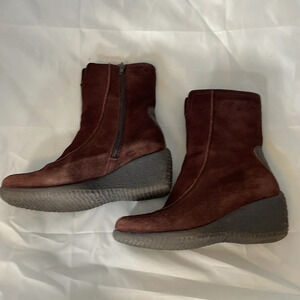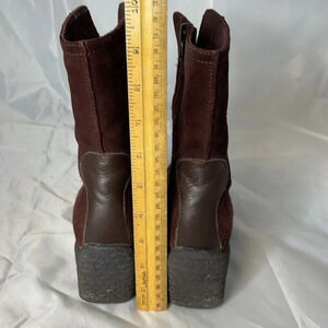 SANTANA Kylie Brown Square Toe Suede Wedge Boots Faux Fur Lined Y2K Neutral 6.5