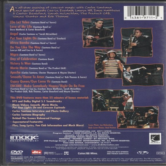 SANTANA - Supernatural Live - 2000 Concert DVD With Carlos Santana And Friends