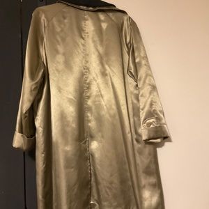 Great car coat by SANYO with button in and out liner in black. The coat color itself is a muted gold. Size is generous US 12. Note there are a few marks on fabric just above pocket and on sleeve but not noticeable when wearing.
