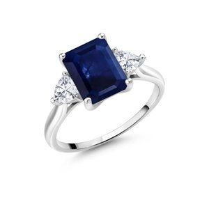 Beautiful 2ct lab grown sapphire with two trillion cut CZ at either side