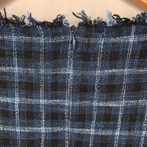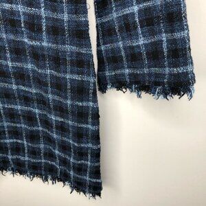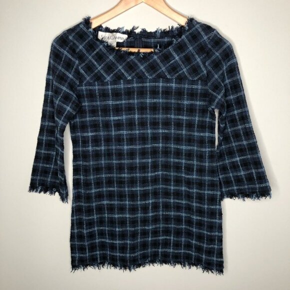 SARA Campbell Plaid Blue Squares Tweed 3/4 Sleeve Top Size XS