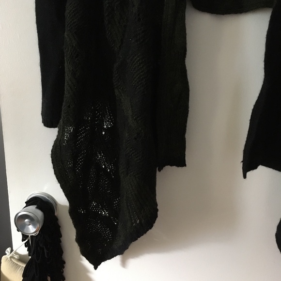 SARAH PACINI Black + Olive Green Alpaca + Wool Mixed Knit Waterfall Card…