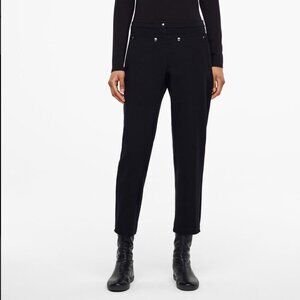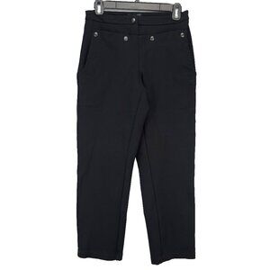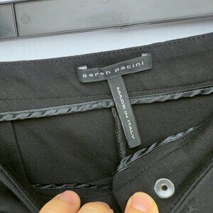 SARAH PACINI Camila Front Pouch Button Details Designer Stretch Black Pants 0