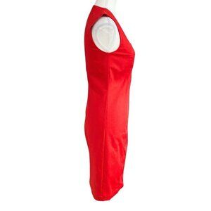 SARAH PACINI RED SQUARE NECK FRONT ZIP BODYCON DRESS - XS