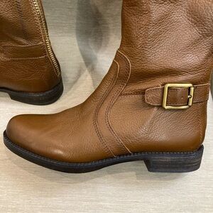 SARTO BY FRANCO SARTO Sz 6 Leather Zipper At Back Comfort Knee High Boots. Like new. Amazing look and feel to the leather and the boot has a golden zipper that accents the gorgeous brown perfectly. Fabric has flaked in one spot inside the boot. Does not affect wear. Lovely transition, capsule wardrobe piece.