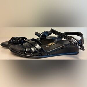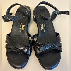 SAS Black healed comfort sandal Platform Sandals patent leather women's size 8