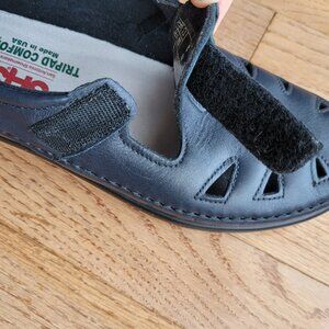 Comfortable leather flats with cut-out design. Cushioned insoles. Marked as an 8, but fits small.