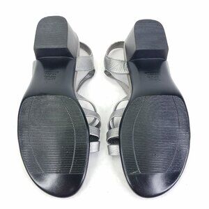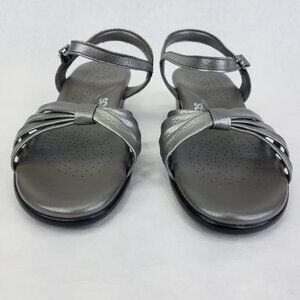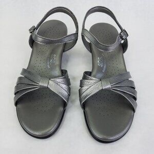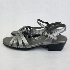 SAS Sandal Women's 9.5 Slingback Strappy Block Heel Silver Patent Leather USA
