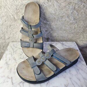 SAS Women’s Blue Leather Slides Slip On Wedge Sandals Size 6.5M