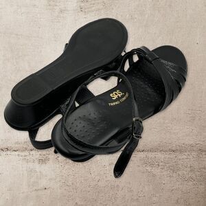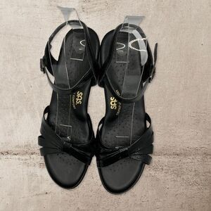 SAS TriPad Comfort Womens Black Patent Leather Ankle Strap Sandals Size 9