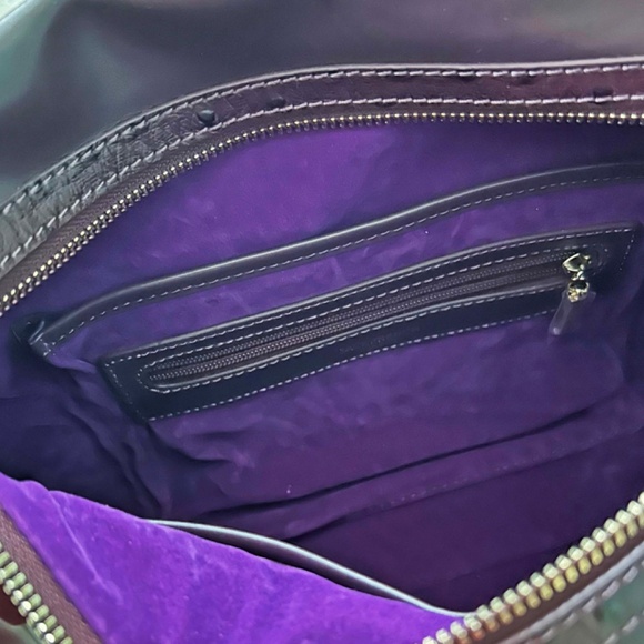 SATCHEL, JACK FRENCH LONDON HOLLOWAY LEATHER, PLUM, TOP ZIP, TOP HANDLE, POCKETS, SLEEPER BAG, IN ORIGINAL PACKAGING, NEW NEVER USED, NO DAMAGE