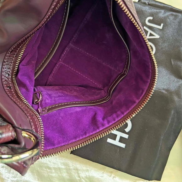 SATCHEL, JACK FRENCH LONDON HOLLOWAY LEATHER, PLUM, TOP ZIP, TOP HANDLE, POCKETS