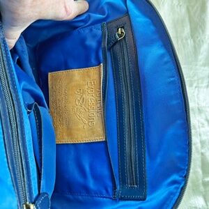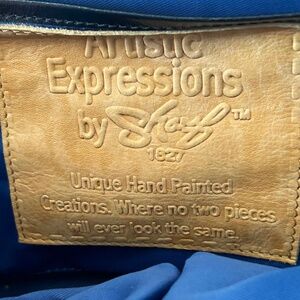 SATCHEL, LEATHER HANDPAINTED MULTICOLOUR PARROTS, TOP DOUBLE ZIP CLOSURE, REMOVABLE/ADJUSTABLE BUCKLE CROSSBODY STRAP, TWO LEATHER HANDLES, POCKETS, DOME SHAPE, SLEEPER BAG, by SHARIF, NEW NEVER USED, NO DAMAGE