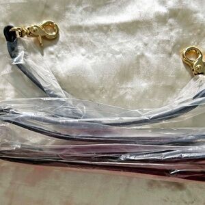 SHOULDER STRAP: Removable and adjustable. ⅝ in. wide x 46 in. L as it is wrapped - I didn't open it.
