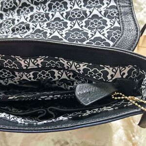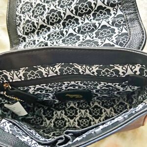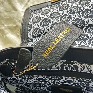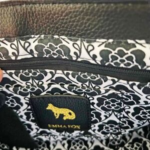 SATCHEL/CROSSBODY, EMMA FOX, LEATHER, BLACK NAVY BEIGE, HAS TOP HANDLE, REMOVABLE/ADJUSTABLE SHOULDER STRAP, METAL TURN HASP CLOSURE, LINED, LOTS POCKETS, TAGS ON NEW NEVER USED, NO DAMAGE