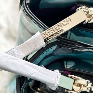 SATCHEL/SHOULDER BAG, JACK FRENCH LONDON PARK LEATHER, BLUE FLORAL, TOP ZIPPERS, TOP HANDLES, SHOULDER STRAP, TWO SECTIONS WITH POCKETS, SLEEPER BAG, IN ORIGINAL PACKAGING, TAGS ON, NEW NEVER USED, NO DAMAGE