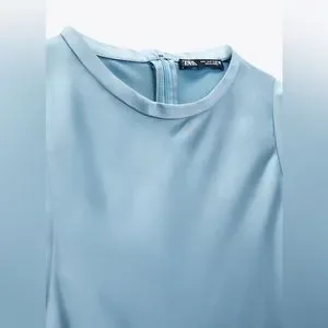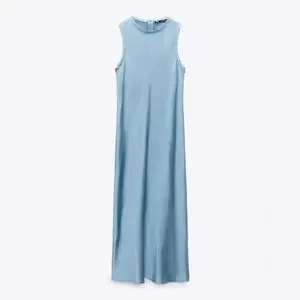 Round neck sleeveless midi dress. Back hidden in-seam zip closure.