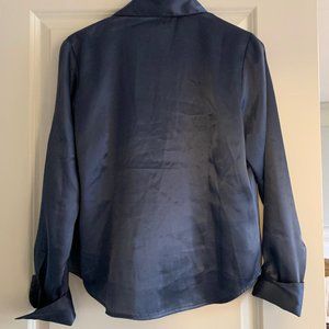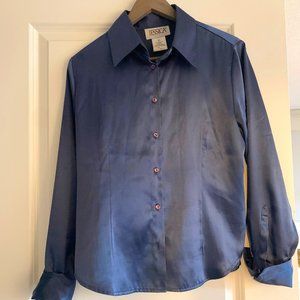 Vintage tailored 'Jessica' blouse. No pulls stains or rips. Beautiful blue colour. Feels silky satiny (although is synthetic) Classic french cuff.