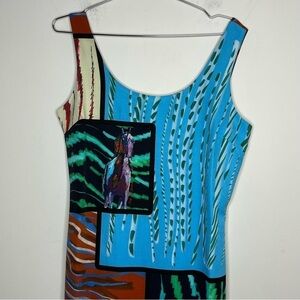 SAVE The Queen Abito Horse Maxi Dress Made in Italy Abstract Painting Print