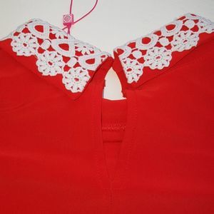 SAVIOA Gorgeous RED Capped Sleeve Blouse with White Lace Collar SIZE Med…
