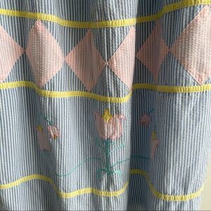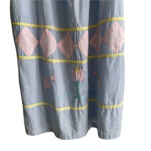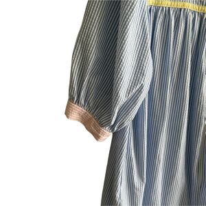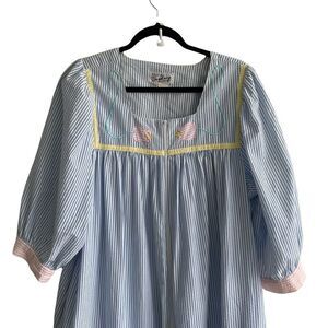 SAYBURY Vintage Blue White Striped Seersucker Housecoat Nightgown Nightdress